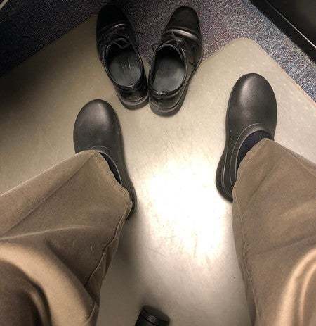 - Thicker, enclosed toe design to help protect foot from spills and drops.