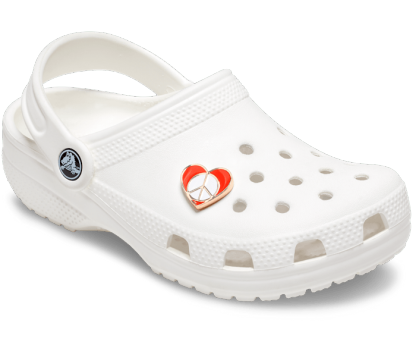 Pop some personality into your shoes with this Peace Sign in Heart Jibbitz™ charm. It's the perfect addition to your favorite pairs of clogs, slides, and more.